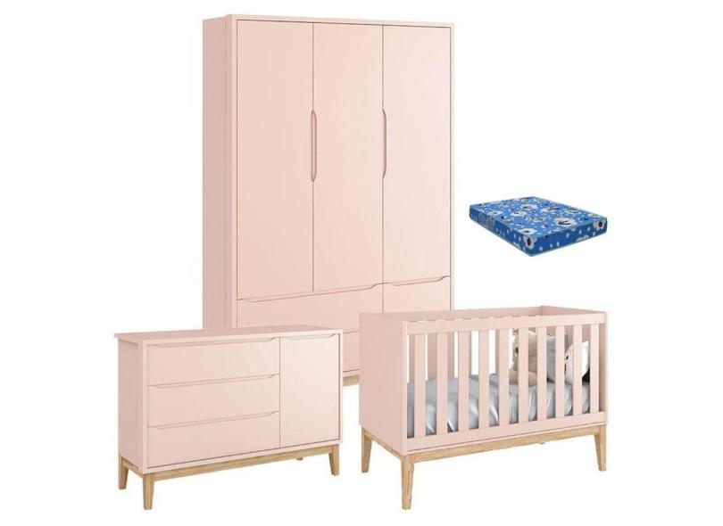 O menor preço encontrado no Brasil para Quarto De Bebê Classic 3 Portas Com Colchão Rosa Pés Madeira Natural - Reller atualmente é R$ 2.441,88.