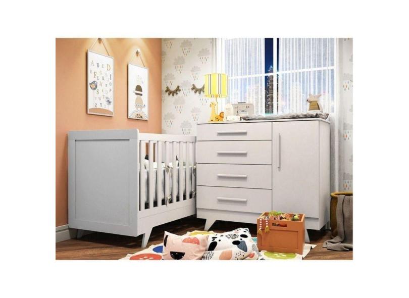 Quarto de Bebê com Berço 2 em 1 e Cômoda 100% MDF Retrô Kakau Espresso Móveis Branco Brilho