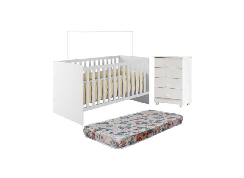Quarto de Bebê com Berço com Colchão Suporte Life e Cômoda de Bebê 100% Mdf 4 Gavetas Soft Life Branco
