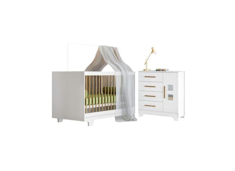 Quarto de Bebê com Berço Mini Cama 100% Mdf Flocos e Cômoda 4 Gavetas 1 Porta Fly 100% Mdf Branco