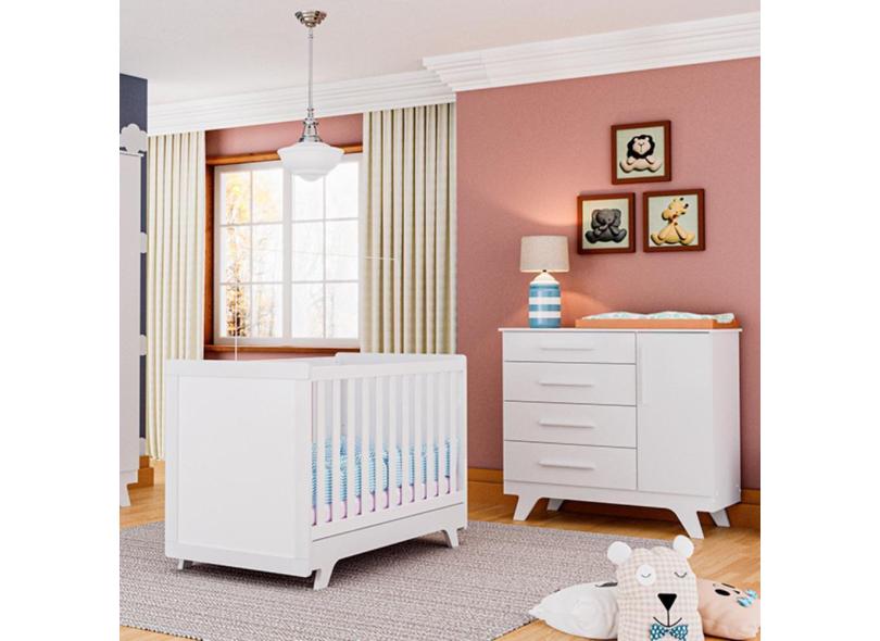 O menor preço encontrado no Brasil para Quarto de Bebê com Cômoda 1 Porta 4 Gavetas e Berço Retrô Moveis Peroba Branco Brilho atualmente é R$ 1.939,90.