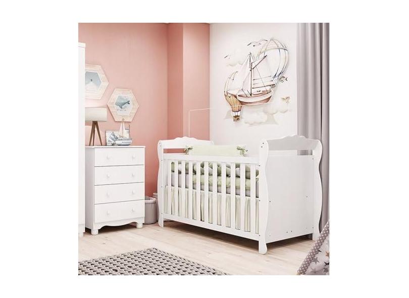 O menor preço encontrado no Brasil para Quarto de Bebê com Cômoda 4 Gavetase Berço Americano Nina 100% Mdf Espresso Móveis Branco Brilho atualmente é R$ 725,43.