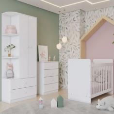 Quarto de Bebê com Guarda-roupa 2 Portas Cômoda e Berço Labirinto