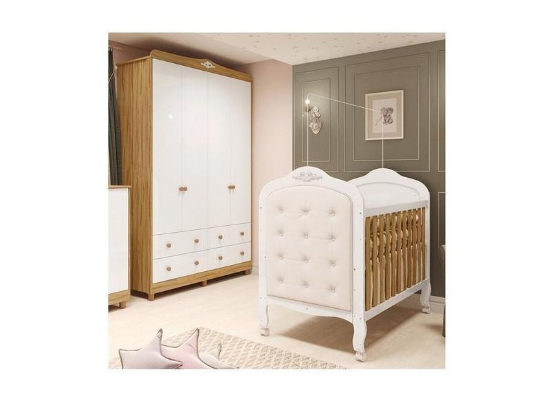 Quarto de Bebê com Guarda-roupa e Berço com Capitonê 100% Mdf Maya Clá