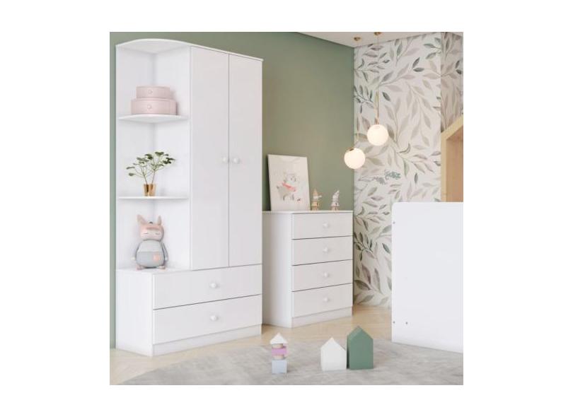 Quarto de Bebê com Guarda Roupa e Cômoda Labirinto Henn, Branco