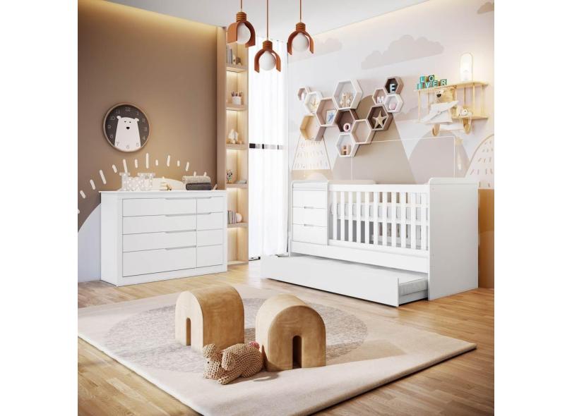 O menor preço encontrado no Brasil para Quarto de Bebê Cômoda 5 Gavetas com Fraldário Berço Multifuncional Americano Cléo Branco Fosco Carolina Baby atualmente é R$ 2.551,62.