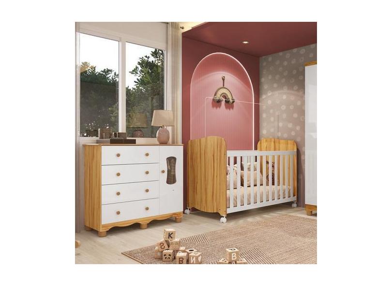 Quarto de Bebê Cômoda com 1 Porta Janelada e Berço com Rodízios 100% M
