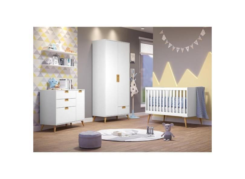 Quarto de Bebê Completo 3 Peças Caring Serpil Baby Branco/Carvalho