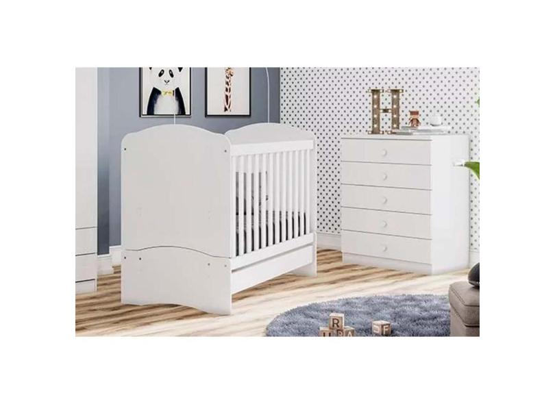 Quarto de Bebê Completo Bala de Menta 2 Peças (1 Cômoda + 1 Berço) QI95 Branco - Henn