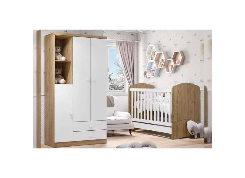 Quarto de Bebê Completo Bala de Menta 2 Peças (1 Guarda Roupa + 1 Berço) QI94 Rústico/Branco - Henn