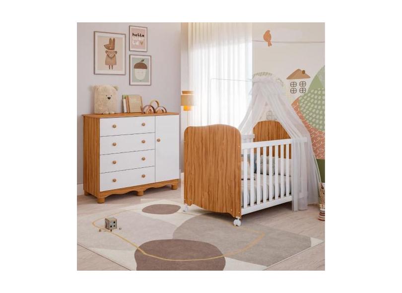 Quarto de Bebê Completo Berço Americano Uli Cômoda 1 Porta 3 Gavetas 1