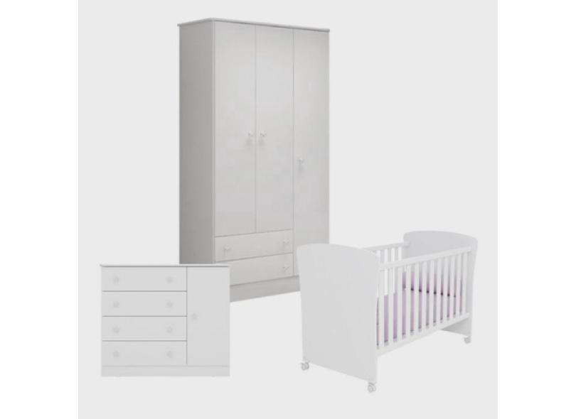 Quarto de Bebê Completo Berço com Rodízios, Guarda Roupa e Cômoda Linha Doce Sonho Branco Qmovi - bigshops