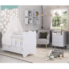 Quarto de Bebê Completo com 1 Berço e 1 Comoda Panda Móveis Percasa Branco