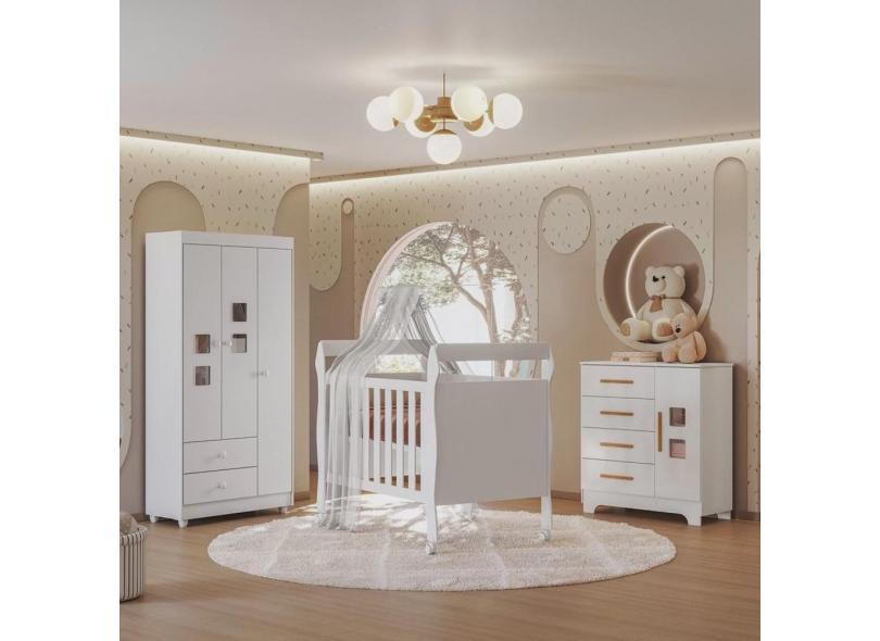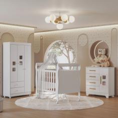 Quarto de Bebê Completo com Cômoda, Berço com Colchão e Guarda Roupas Mila