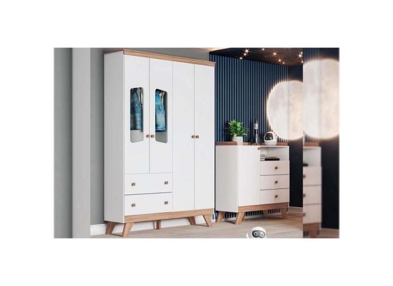Quarto de Bebê Completo Confete 2 Peças (1 Guarda Roupa + 1 Cômoda) QI66 Branco/Jequitiba - Henn