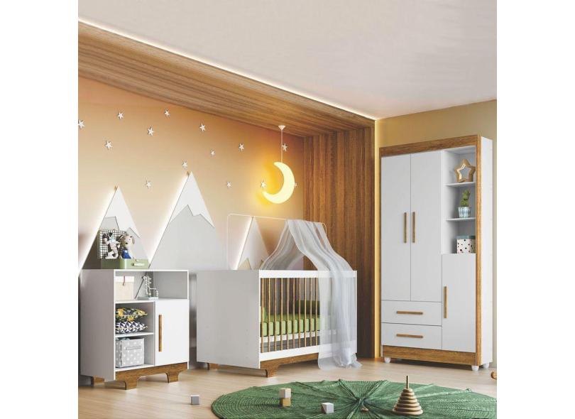 Quarto de Bebê Completo Flocos 100% Mdf 4 Portas 2 Gavetas Branco/Ypê 4105 - Tigus Baby
