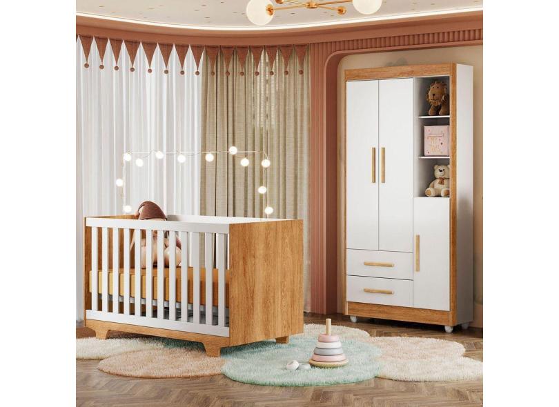 O menor preço encontrado no Brasil para Quarto de Bebê Completo Lara 100% Mdf 3 Portas 2 Gavetas Amadeirado/Branco 5351 - Tigus Baby atualmente é R$ 994,63.