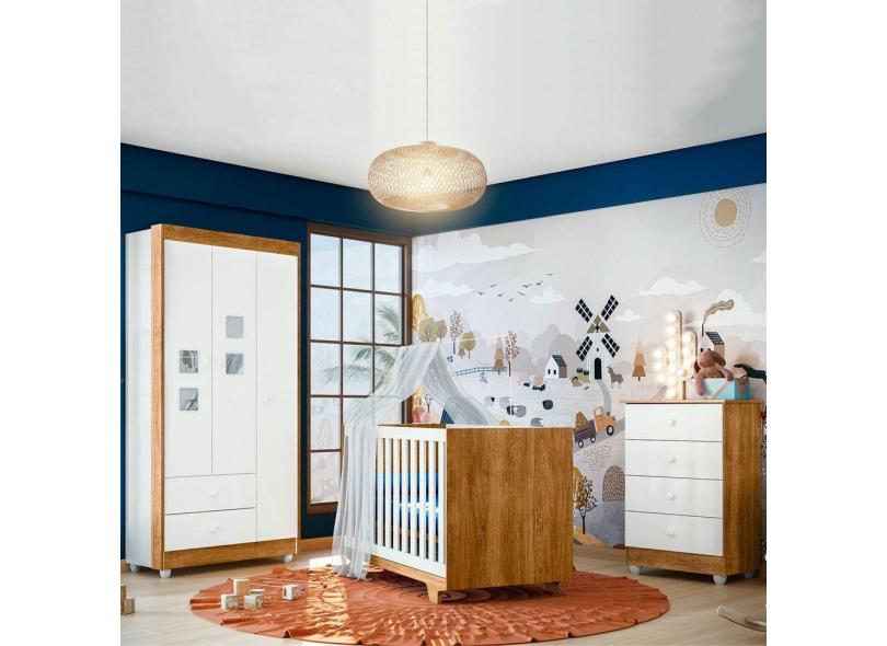 Quarto de Bebê Completo Life 100% Mdf 3 Portas 6 Gavetas Branco/Ypê 2225 - Tigus Baby