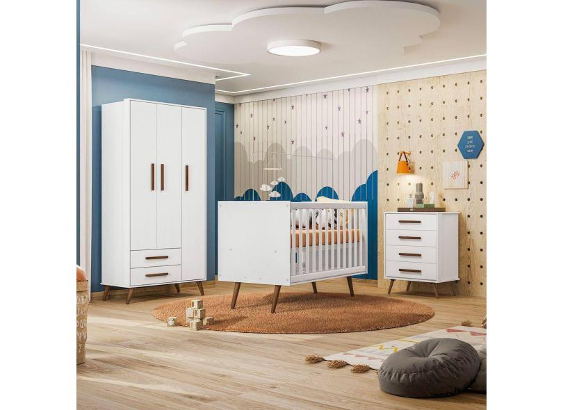 Quarto de Bebê Completo Qencanto Retrô Qmovi Branco Acetinado
