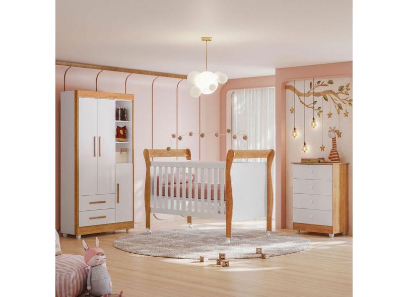 Quarto de Bebê Completo Zara 100% Mdf 3 Portas 6 Gavetas Branco/Amadeirado 5428 - Tigus Baby