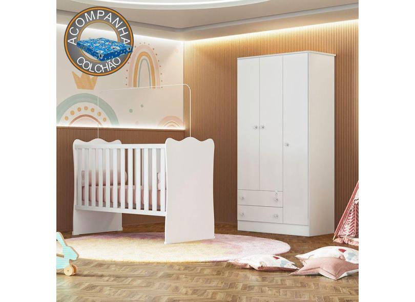 O menor preço encontrado no Brasil para Quarto de Bebê Doce Sonho com Roupeiro 2617 e Berço Simples 1 Qmovi Branco + Colchão Ortobom atualmente é R$ 864,36.