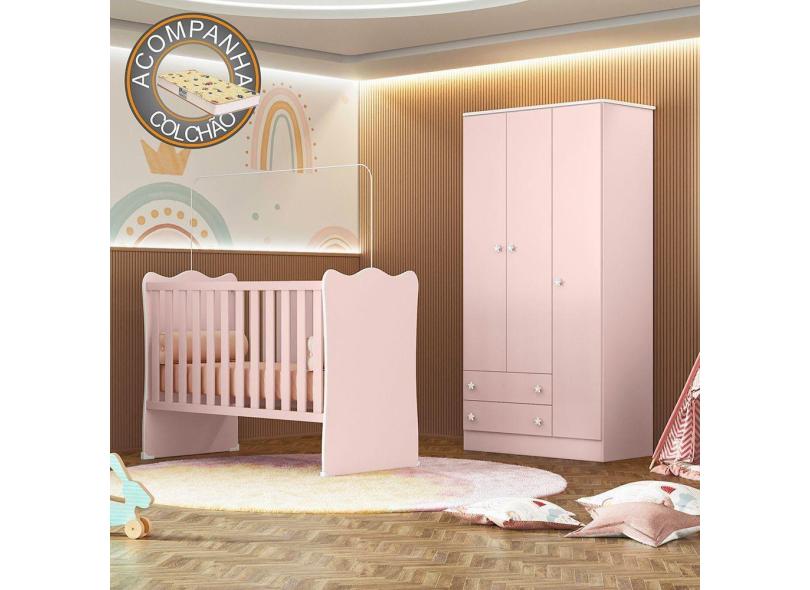 O menor preço encontrado no Brasil para Quarto de Bebê Doce Sonho com Roupeiro 2617 e Berço Simples 1 Qmovi Rosa Acetinado + Colchão Gazin atualmente é R$ 855,96.