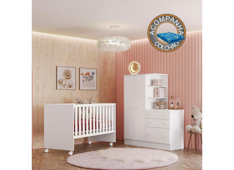 O menor preço encontrado no Brasil para Quarto de Bebê Doce Sonho com Roupeiro + Berço Branco Qmovi + Colchão Physical atualmente é R$ 781,15.