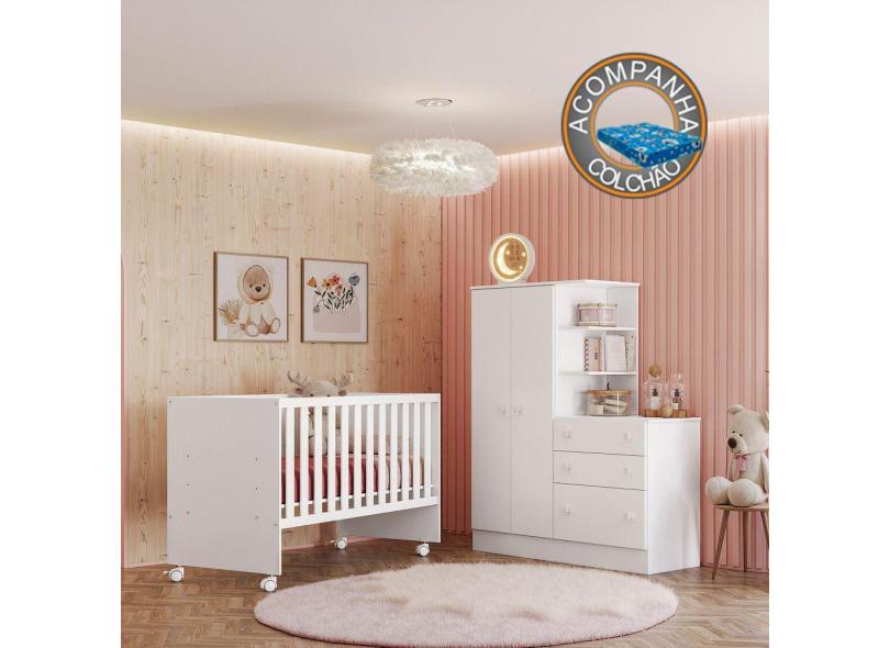O menor preço encontrado no Brasil para Quarto de Bebê Doce Sonho com Roupeiro e Berço Branco Qmovi + Colchão Physical atualmente é R$ 763,56.
