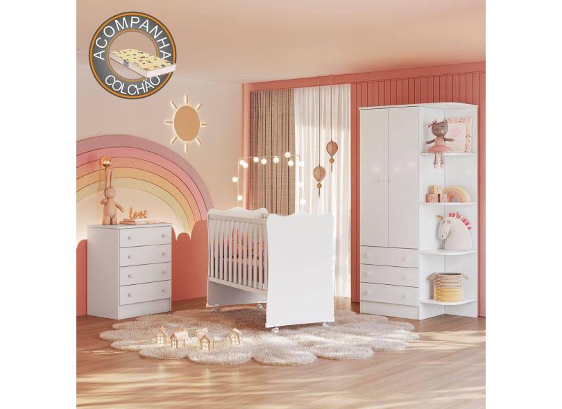 O menor preço encontrado no Brasil para Quarto de Bebê Doce Sonho Completo c/ Rodízios Qmovi Branco + Colchão Gazin atualmente é R$ 1.065,96.
