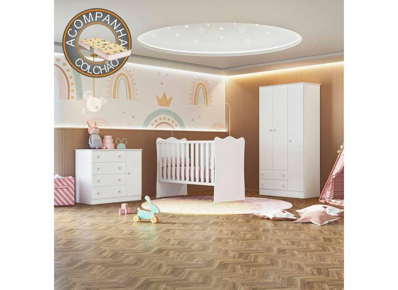 O menor preço encontrado no Brasil para Quarto de Bebê Doce Sonho Completo com Cômoda Sapateira Qmovi Branco + Colchão Gazin atualmente é R$ 1.116,36.