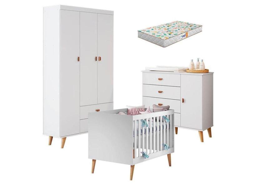 O menor preço encontrado no Brasil para Quarto De Bebê Duda Com Berço Americano Ludmila Branco Acetinado Bétula E Colchão Gazin - Carolina atualmente é R$ 1.336,78.