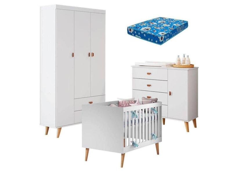 O menor preço encontrado no Brasil para Quarto De Bebê Duda Com Berço Americano Ludmila Branco Acetinado Bétula E Colchão Ortobom atualmente é R$ 1.448,33.