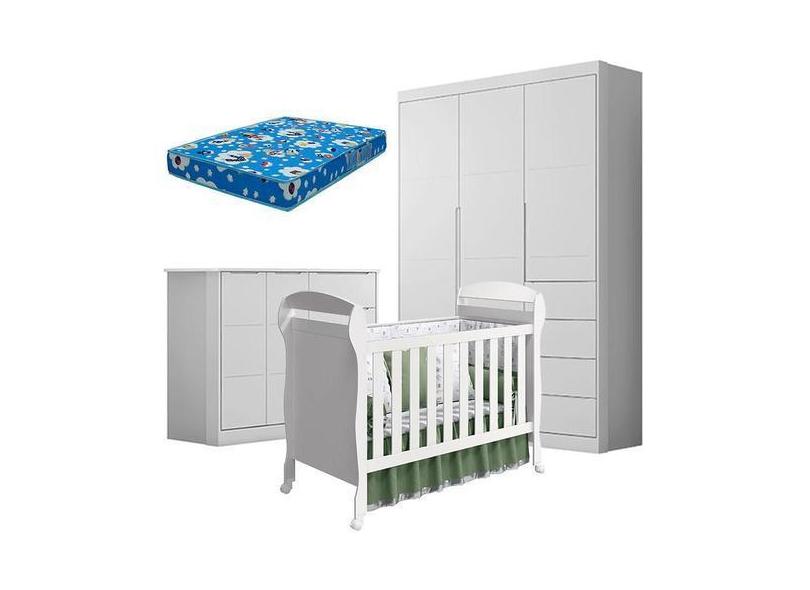 Quarto de Bebê Eloá com Berço Americano Danny Branco Acetinado e Colch