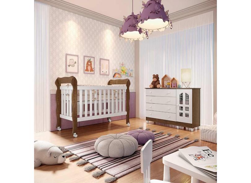 Quarto de Bebê Gran Selena Berço 3 em 1 Lila Cômoda com Porta Branco Amadeirado Carolina Baby