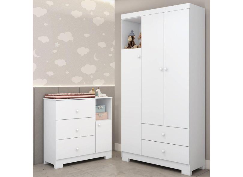 O menor preço encontrado no Brasil para Quarto de Bebê Guarda-roupa 3 Portas Cômoda 3 Gavetas 1 Porta Flofy Branco atualmente é R$ 977,76.