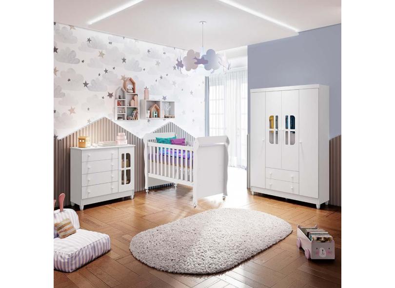 O menor preço encontrado no Brasil para Quarto de Bebê Guarda Roupa 4 Portas Cômoda com Fraldário Gabriele Berço Mini Cama Mirelle Branco Carolina Baby atualmente é R$ 2.111,32.