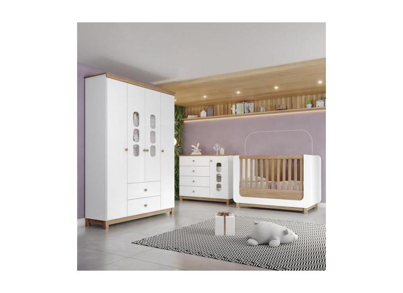 Quarto de Bebê Guarda Roupa Berço e Cômoda Aconchego Henn, Branco/Jequ