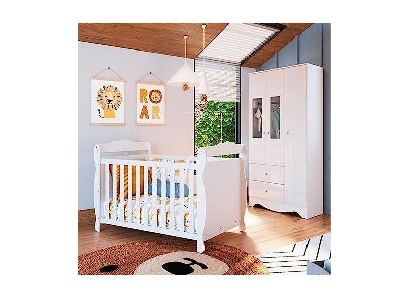 O menor preço encontrado no Brasil para Quarto de Bebê Guarda Roupa com Janelas Retangulo e Berço Americano Cocada Branco Brilho atualmente é R$ 1.208,94.