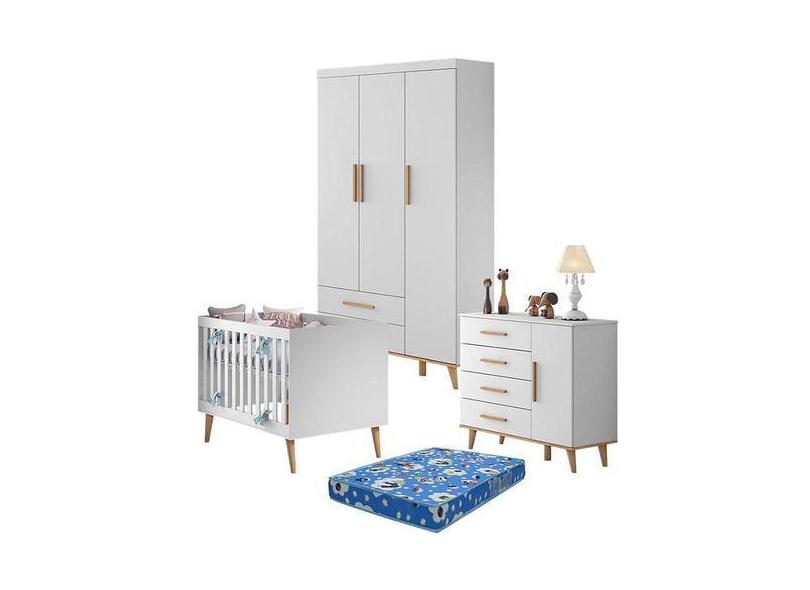 Quarto de Bebê Ludmila Branco Bétula com Colchão Ortobom Carolina - C