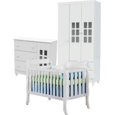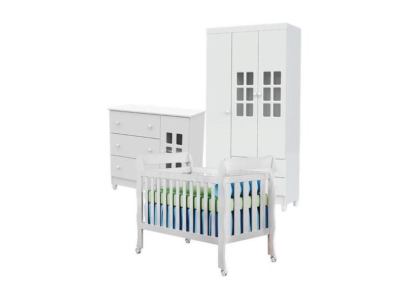 Quarto de Bebê Mariah 3P com Berço Lila Branco Brilho - Carolina - Car