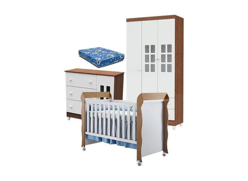 Quarto de Bebê Mariah 3P com Berço Mirelle Branco Acetinado Amadeirado