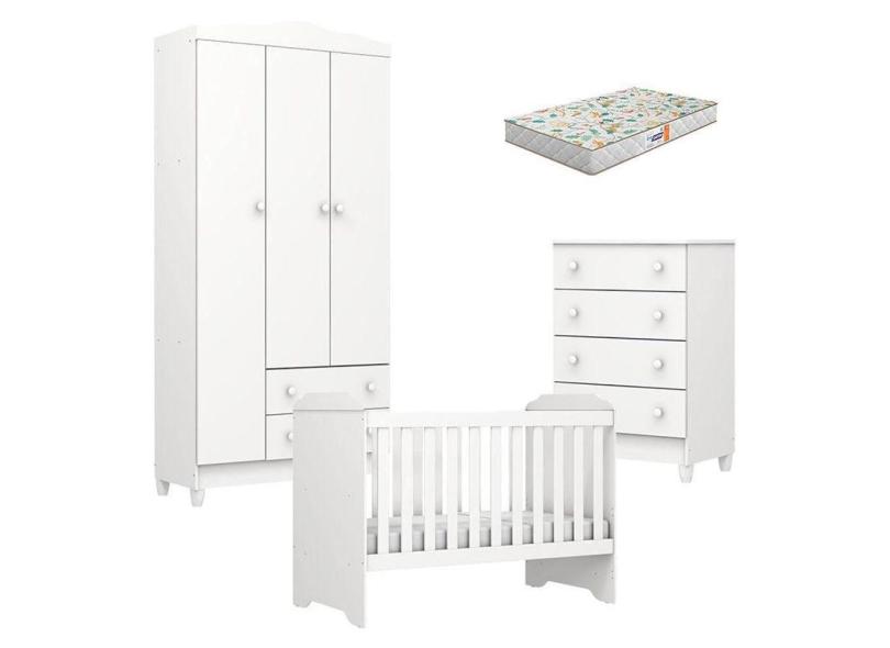 O menor preço encontrado no Brasil para Quarto De Bebê Mel Flat Branco Brilho Com Colchão Gazin - Carolina atualmente é R$ 1.142,47.