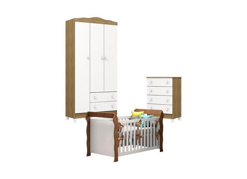 Quarto de Bebê Mel Flat com Berço Americano Lara Branco Acetinado Amad