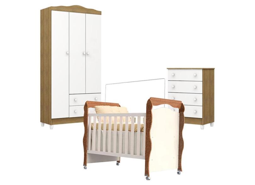 Quarto de Bebê Mel Flat com Berço Americano New Nanda Branco Acetinado Amadeirado - Carolina