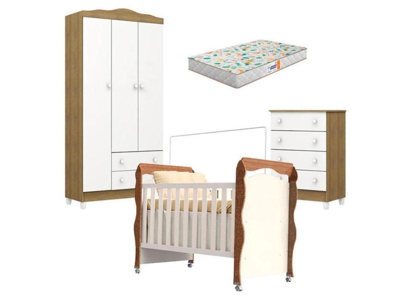 O menor preço encontrado no Brasil para Quarto De Bebê Mel Flat E Berço Americano New Nanda Branco Acetinado Amadeirado Com Colchão Gazin atualmente é R$ 1.287,32.