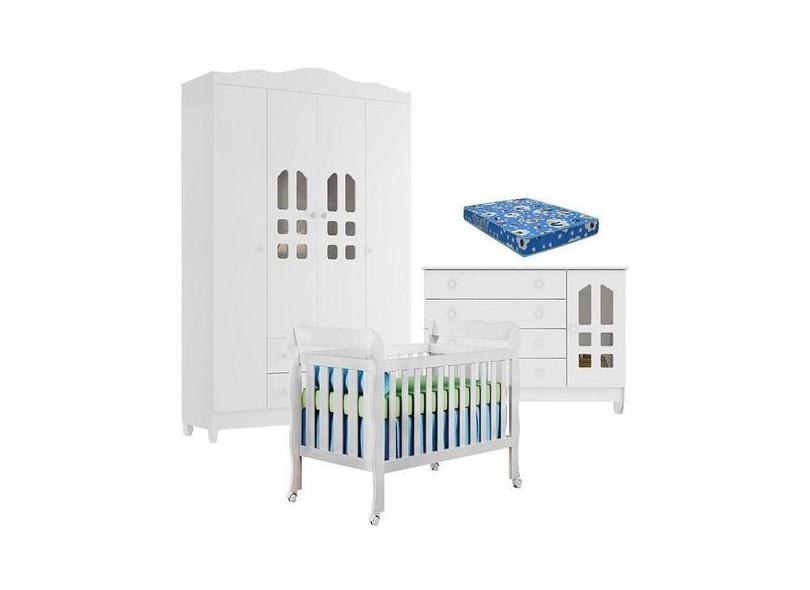Quarto de Bebê New Selena 4 Portas com Berço Lila e Cômoda Gran Selena