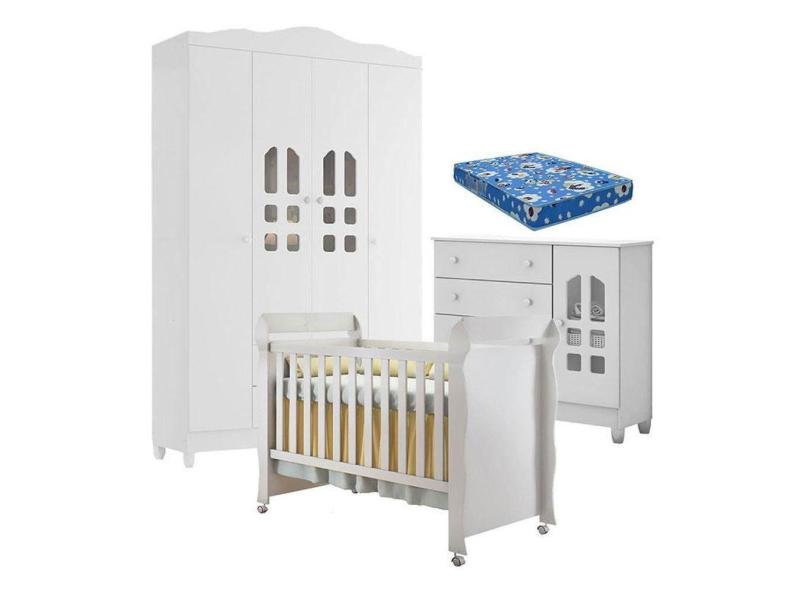 O menor preço encontrado no Brasil para Quarto De Bebê New Selena 4 Portas Cômoda Selena E Berço Mirelle Branco Brilho E Colchão Ortobom atualmente é R$ 1.563,74.