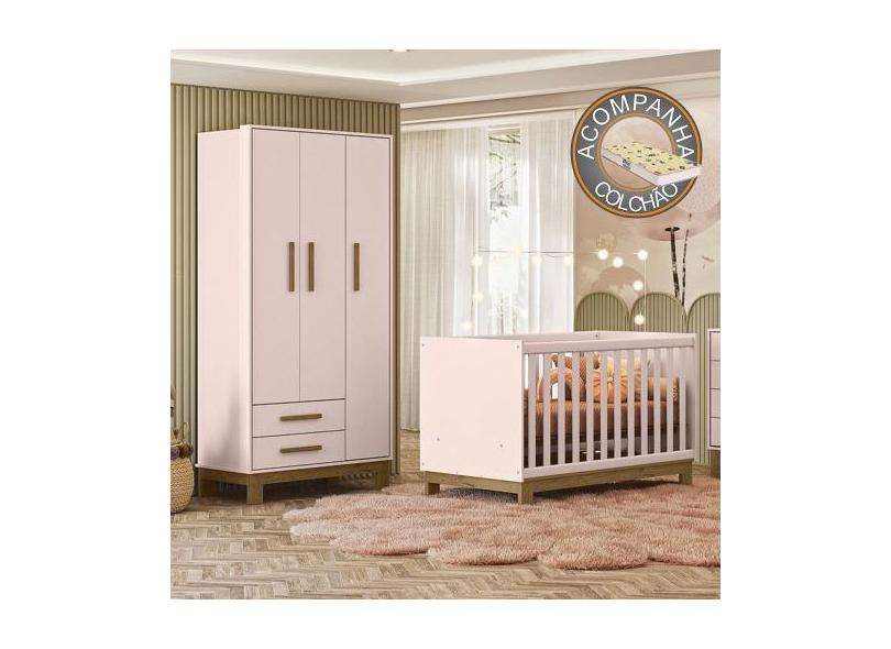Quarto de Bebê Qencanto Slim com Roupeiro 4340 e Berço 4315 Qmovi Rosa