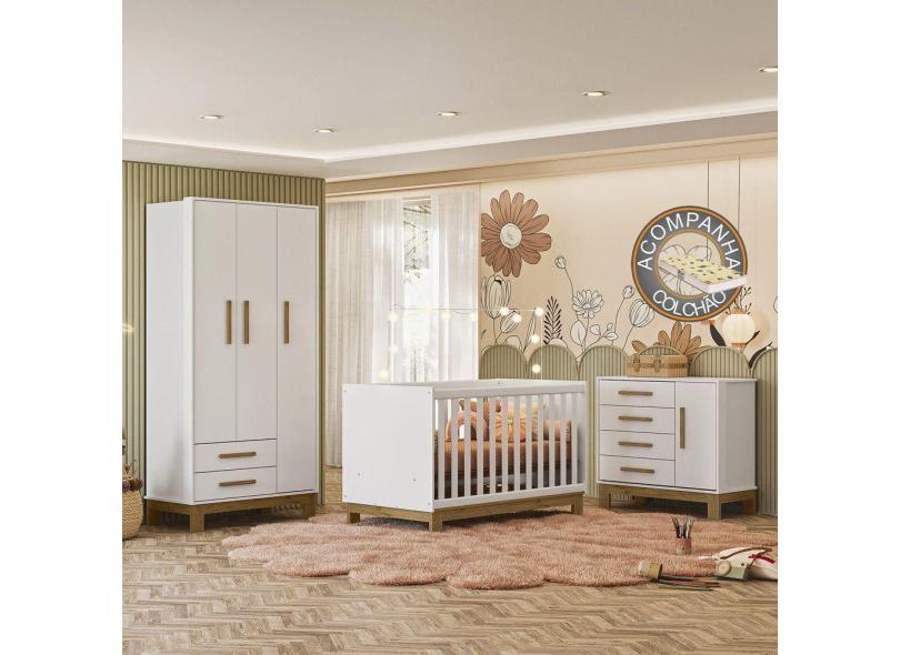 O menor preço encontrado no Brasil para Quarto de Bebê Qencanto Slim Completo Qmovi Branco Acetinado + Colchão Gazin atualmente é R$ 1.242,36.