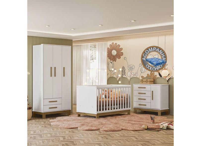 O menor preço encontrado no Brasil para Quarto de Bebê Qencanto Slim Completo Qmovi Branco Acetinado + Colchão Ortobom atualmente é R$ 1.282,65.